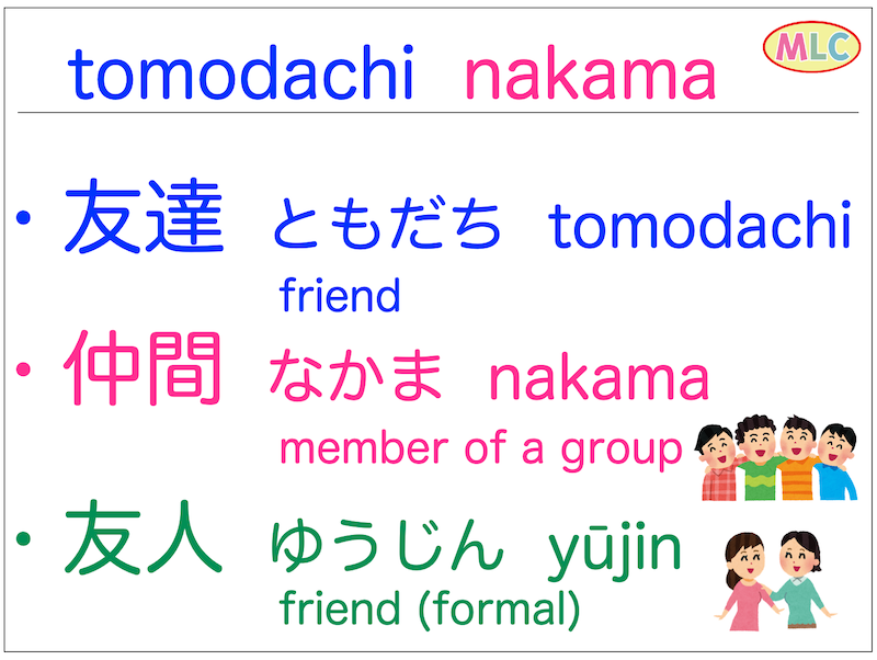 JLPT N5 vocabulary: Friends (tomodachi, yuujin) & honorifics (...san formal, ...chan cute, ...kun boys, ...sama respect). Romaji, meanings, usage tips for beginners. Free lesson from MLC Japanese School Tokyo!