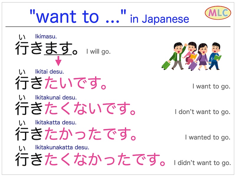 にほんに いきたいです。 Nihoni ni ikitai desu. = Lit. (I) want to go to Japan.